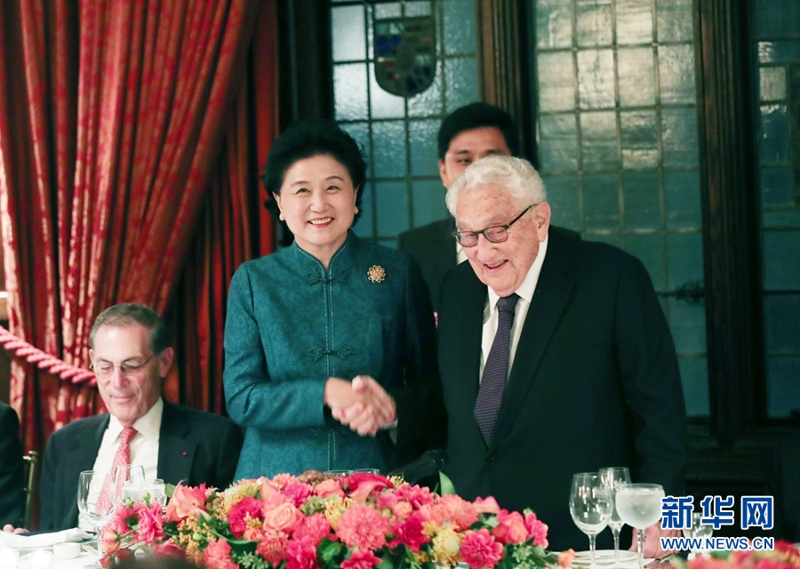 9月25日晚,中國(guó)國(guó)務(wù)院副總理劉延?xùn)|在美國(guó)紐約應(yīng)約出席基辛格博士為其舉行的晚宴。賓主雙方在輕松熱烈的氣氛中就促進(jìn)中美友好交流等問題深入交換了意見。這是劉延?xùn)|在晚宴上與基辛格握手。新華社記者 王迎 攝