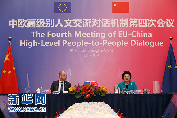 11月14日,國務(wù)院副總理劉延?xùn)|與歐盟委員會教育、文化、青年和體育委員瑙夫勞契奇作為機制雙方主席在上海共同主持中歐高級別人文交流對話機制第四次會議。新華社記者 劉穎 攝