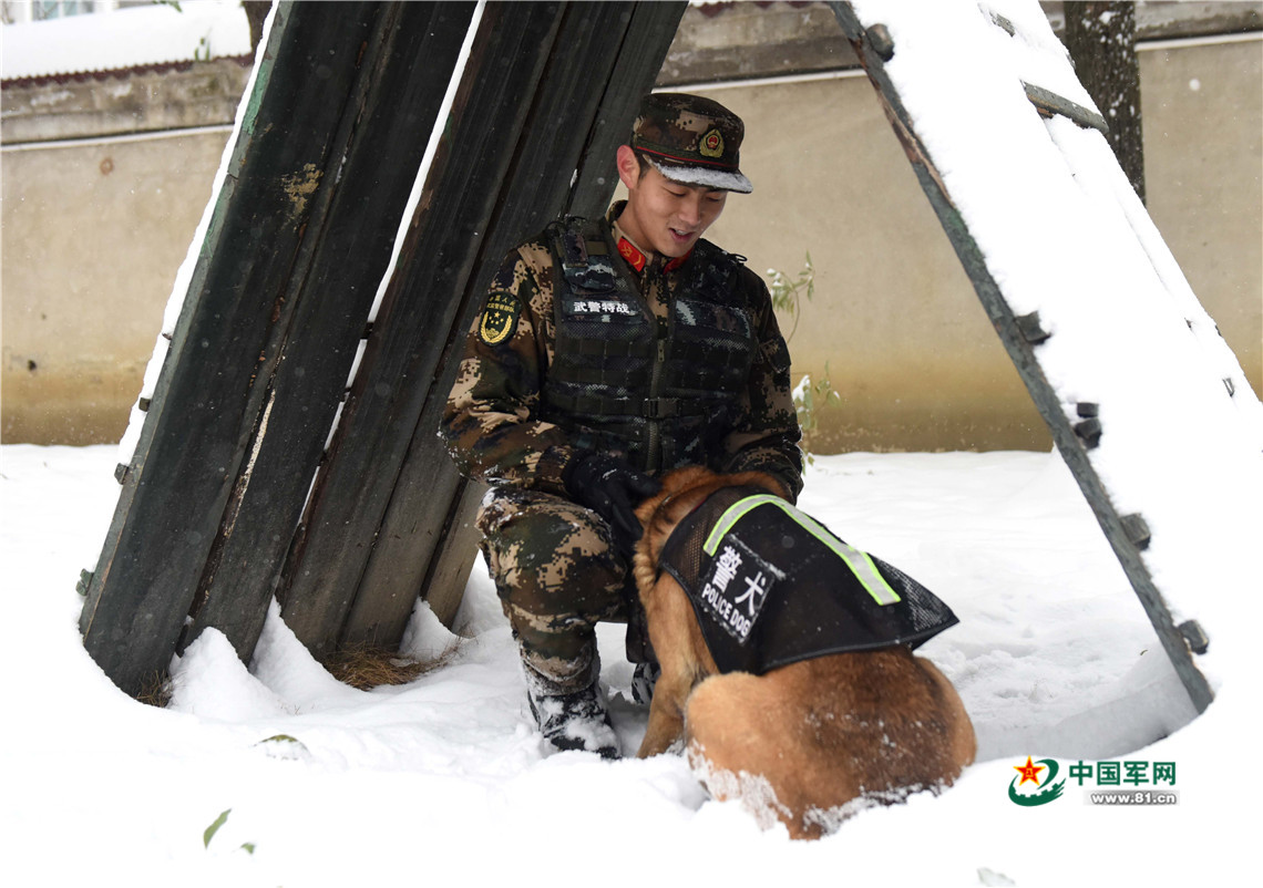 1月27日,訓(xùn)練間隙,警犬“魯克”一頭扎進(jìn)警犬班班長王營廣的懷里撒嬌。