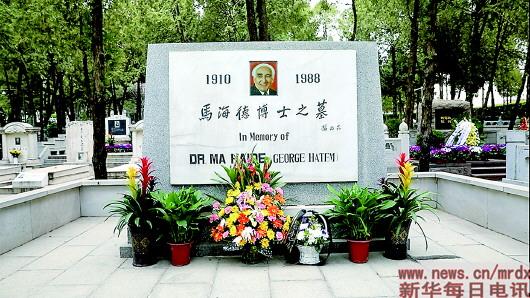 八寶山革命公墓里,蒼松翠柏掩映,馬海德的墓碑十分顯眼。墓碑上端鑲有馬海德的照片,兩側(cè)分別是他生卒的年份。墓碑中間刻有時任國家主席楊尚昆題寫的“馬海德博士之墓”七個大字。