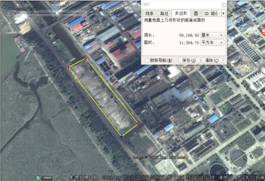 圖1 掩埋化工廢料區(qū)域2009年的衛(wèi)星影像