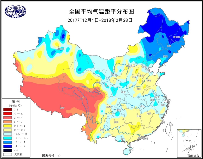 周兵:從氣候異常信號(hào)來(lái)看,我國(guó)于2017年10月-2018年3月出現(xiàn)一次弱的拉尼娜事件,一般拉尼娜對(duì)我國(guó)的直接影響就是冷冬,然而剛剛過去的冬季,全國(guó)平均氣溫-3.2℃,較常年同期(-3.4℃)還偏高0.2℃。雖然整體氣溫較常年平均偏高,但從氣溫距平分布來(lái)看,除青藏高原大部氣溫較常年同期偏高2~4℃外,全國(guó)其余地區(qū)氣溫接近常年或偏低,其中東北及內(nèi)蒙古東北部、新疆北部等地偏低1~2℃,局地偏低2~4℃。