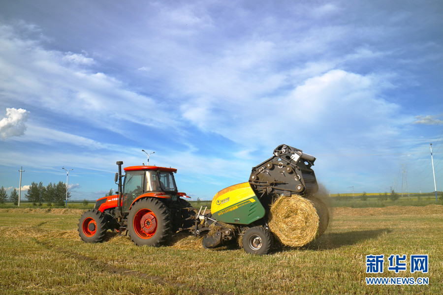 內(nèi)蒙古呼倫貝爾農(nóng)墾集團(tuán)施業(yè)區(qū)面積約3萬平方公里,有耕地600萬畝,草場(chǎng)1000萬畝。集團(tuán)下轄海拉爾、大興安嶺兩大農(nóng)墾集團(tuán)和7個(gè)專業(yè)公司,有24個(gè)現(xiàn)代化農(nóng)牧場(chǎng)。自1954年開發(fā)建設(shè)以來,墾區(qū)實(shí)行半軍事化管理,80%以上耕地集中統(tǒng)一耕種,采用先進(jìn)的大型農(nóng)機(jī)設(shè)備,田間綜合機(jī)械化水平達(dá)99%,農(nóng)業(yè)科技貢獻(xiàn)率達(dá)到72%。圖為7月21日,一輛捆草機(jī)正在內(nèi)蒙古呼倫貝爾市謝爾塔拉農(nóng)場(chǎng)進(jìn)行捆草作業(yè)。(新華網(wǎng) 汪亞/攝)