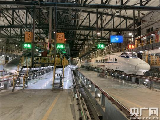 高鐵白天在線路上飛馳,夜晚才會(huì)進(jìn)入動(dòng)車所。因此,每天下午5點(diǎn)半到次日凌晨的這段時(shí)間成了郭志華和同事們最忙碌的時(shí)刻。