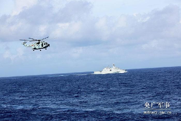 中國海軍遠(yuǎn)海訓(xùn)練編隊:艦機(jī)協(xié)同開展臨檢拿捕演練