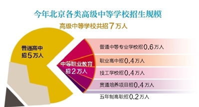 昨天,北京市教委發(fā)布《北京市教育委員會(huì)關(guān)于做好2019年高級(jí)中等學(xué)校考試招生工作的意見(jiàn)》(以下簡(jiǎn)稱(chēng)“意見(jiàn)”)。北京青年報(bào)記者注意到,根據(jù)意見(jiàn),今年本市各類(lèi)高級(jí)中等學(xué)校招生規(guī)模為7萬(wàn)人,其中普通高中招5萬(wàn)人,中等職業(yè)教育招2萬(wàn)人。同時(shí),確定中考文化課考試時(shí)間為2019年6月24日至26日。