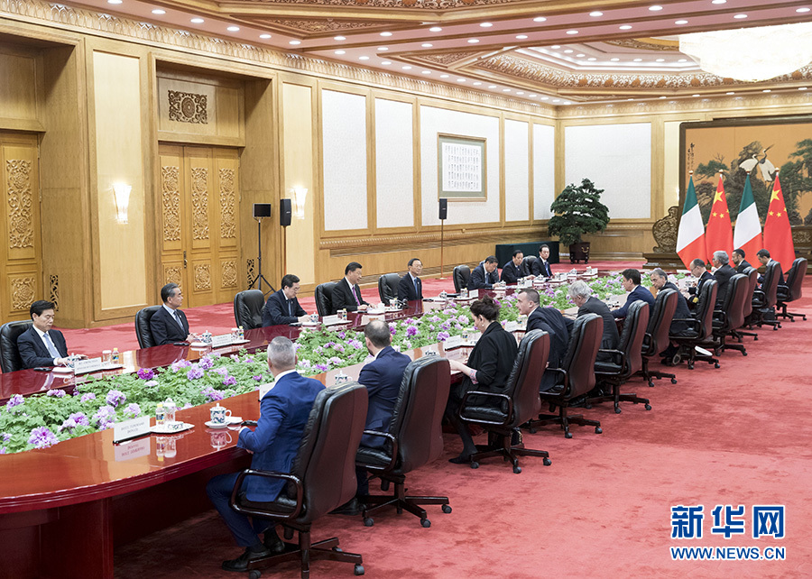 習近平指出,上個月,我對意大利成功進行國事訪問,受到熱情周到接待,我再次表示衷心感謝。訪問期間,我深感意大利各界對發(fā)展對華合作的熱切期待以及意大利人民對中國人民的真摯友誼。意方宣布歸還查獲的700多件流失中國文物,也引起中國人民熱烈反響,相關(guān)展覽正在中國國家博物館舉辦。中方高度贊賞意大利在西方大國中率先同中方簽署共建“一帶一路”合作諒解備忘錄,愿同意方一道努力,攜手推進共建“一帶一路”,擴大貿(mào)易和相互投資,深化務(wù)實合作和科技人文交流,讓中意關(guān)系結(jié)出更加豐碩果實、兩國人民從友好合作中有更多獲得感,成為中歐共建“一帶一路”合作的典范。雙方還要牢牢把握中意關(guān)系的戰(zhàn)略內(nèi)涵,在完善全球治理體系、維護自由貿(mào)易和多邊主義等方面加強協(xié)調(diào)配合,構(gòu)建相互尊重、公平正義、合作共贏的新型國際關(guān)系。希望意方為推動中歐關(guān)系發(fā)展發(fā)揮更大作用。