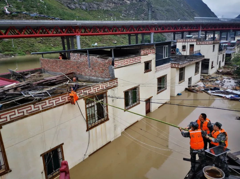 某地農(nóng)村發(fā)生山洪泥石流災害 ,救援人員為受災群眾送去救生衣 余羌 攝