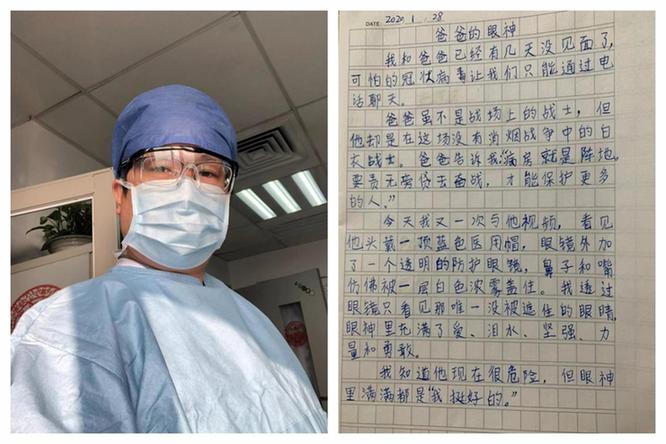 厚厚的防護服把爸爸包裹的嚴(yán)嚴(yán)實實