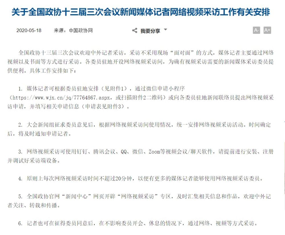 兩會開幕在即,5月18日,中國政協網發(fā)布了這樣一則通知: