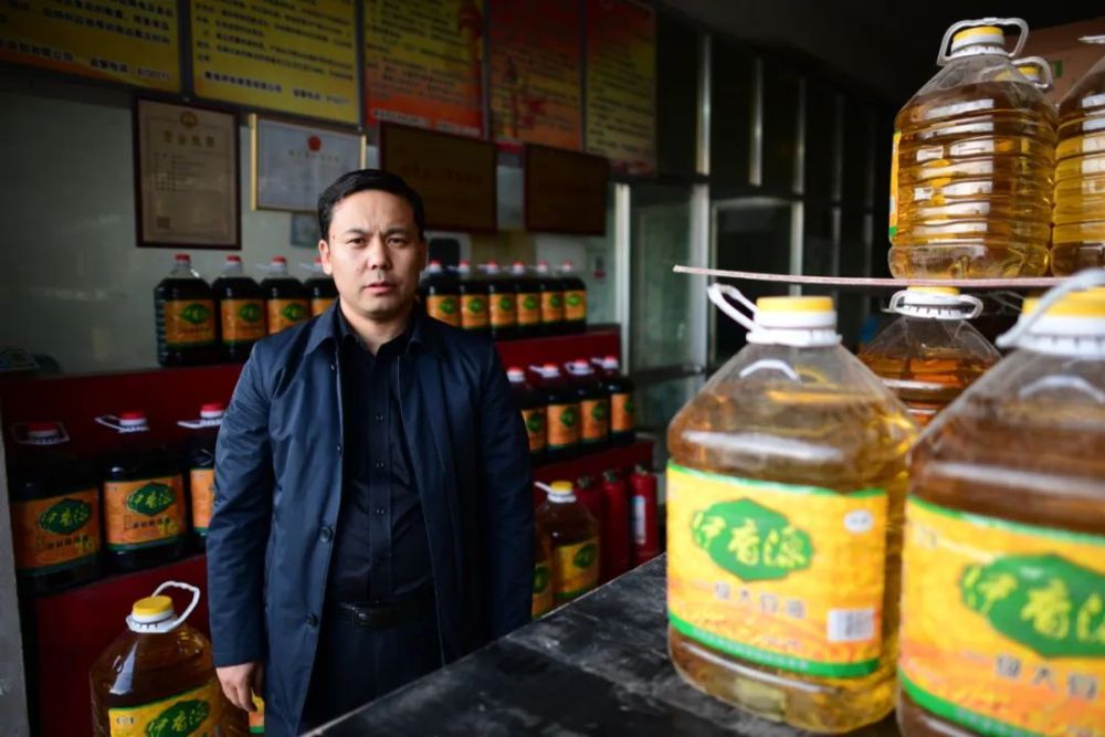 韓光遠(yuǎn)在自家的食用油配送點(diǎn)查看配送狀況 張宏祥 攝
