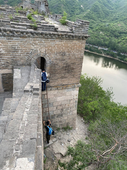 未成年游客通過(guò)焊梯登長(zhǎng)城