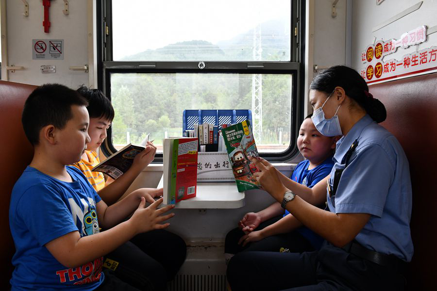 開學前夕,漢中車務段漢中火車站休班職工在8361/8362次列車上,為小旅客講授“安全第一課”。(8月22日攝)