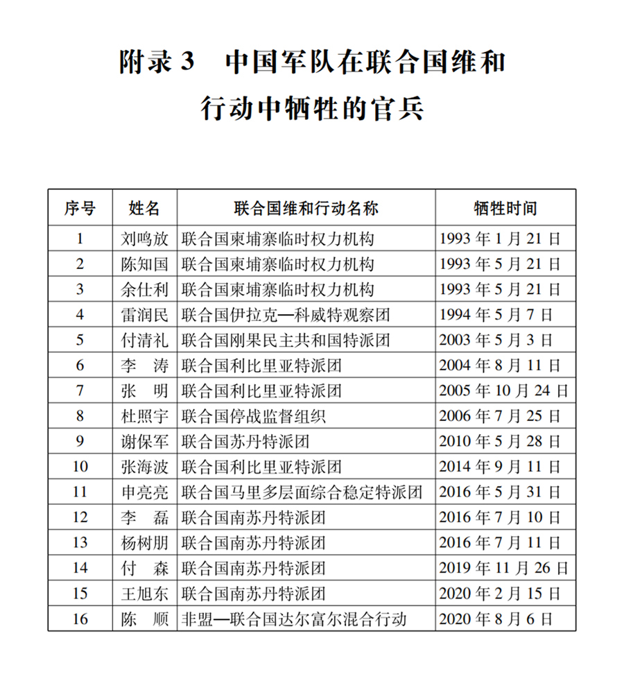 附錄3 中國(guó)軍隊(duì)在聯(lián)合國(guó)維和行動(dòng)中犧牲的官兵