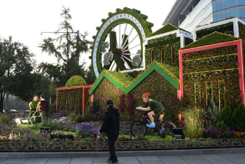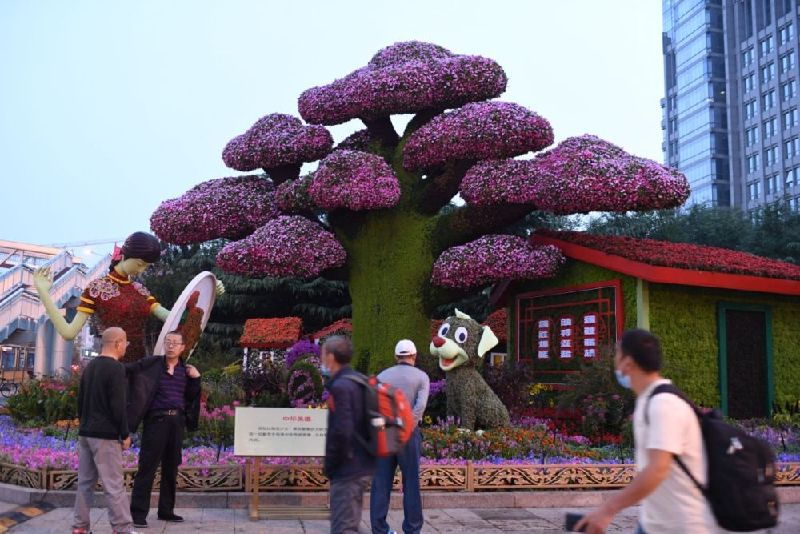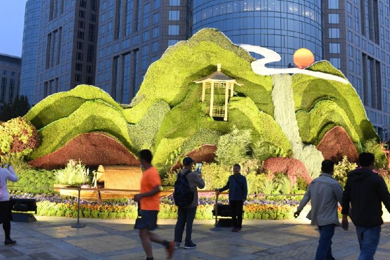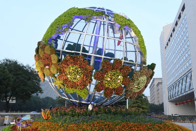 今晨,北京長安街10處國慶主題花壇驚艷亮相