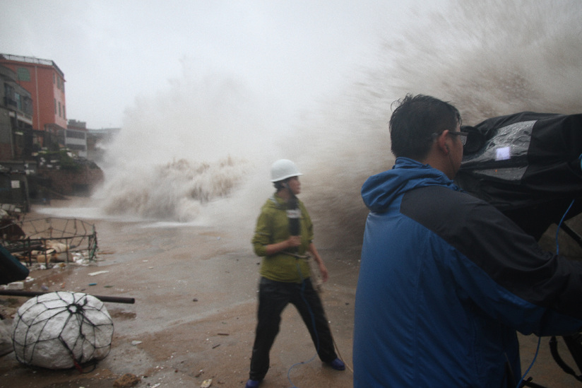 臺(tái)風(fēng)報(bào)道工作照