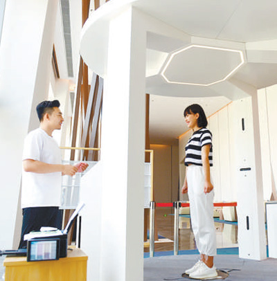 顧客在滄州市明珠國際服裝生態(tài)新城進(jìn)行3D掃描量體。本報記者 史自強(qiáng)攝