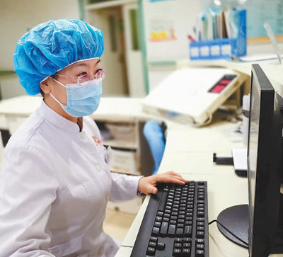 新疆醫(yī)科大學(xué)第五附屬醫(yī)院護理人員在核對醫(yī)囑。金 娜攝