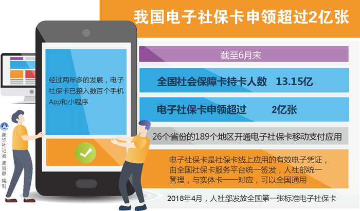 新華社北京10月6日電(記者姜琳)人力資源和社會保障部近日發(fā)布的數(shù)據(jù)顯示,截至6月末,全國社會保障卡持卡人數(shù)13.15億,電子社??ㄉ觐I(lǐng)超過2億張,26個省份的189個地區(qū)開通電子社??ㄒ苿又Ц稇?yīng)用。