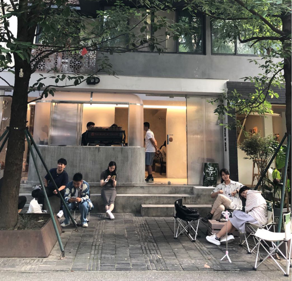 然而,眼前卻是和諧的景象:住在街區(qū)的樂齡長者在禁止機(jī)動車進(jìn)入的步道上或坐著、或站著;剛放學(xué)的小朋友在街上或跳繩、或騎車,用成都話來說就是人民都在街上“?!保贿@里的食店和酒館也沒有過多的噪音和油煙排放,消費者也很有禮貌地在路上行走、在店鋪旁等位——實際上,不少食客和消費者也是當(dāng)?shù)氐木用瘛?/span>