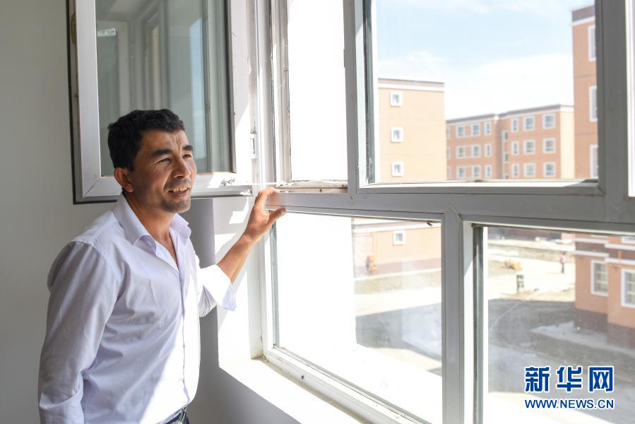 新疆葉城縣棋盤鄉(xiāng)居民來到葉城縣易地扶貧搬遷物流園區(qū)安置點(diǎn)查看新房(2019年8月19日攝)。新華社記者 丁磊 攝