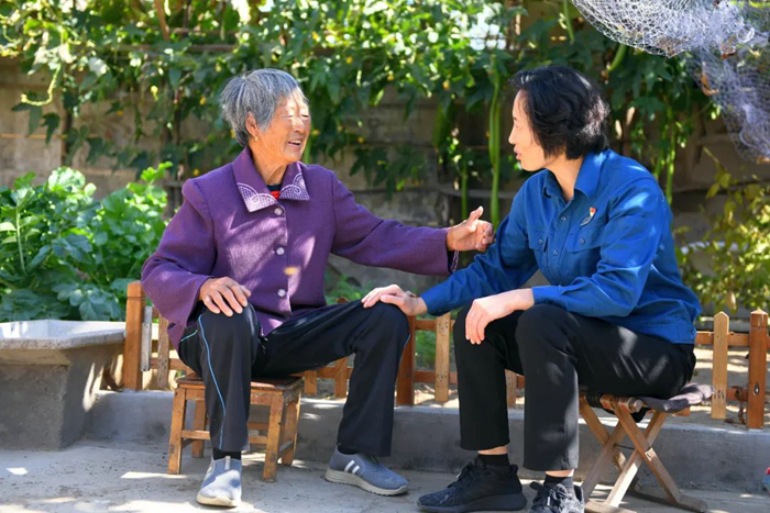 一名駐村第一書(shū)記(右)在走訪村民 朱崢 攝
