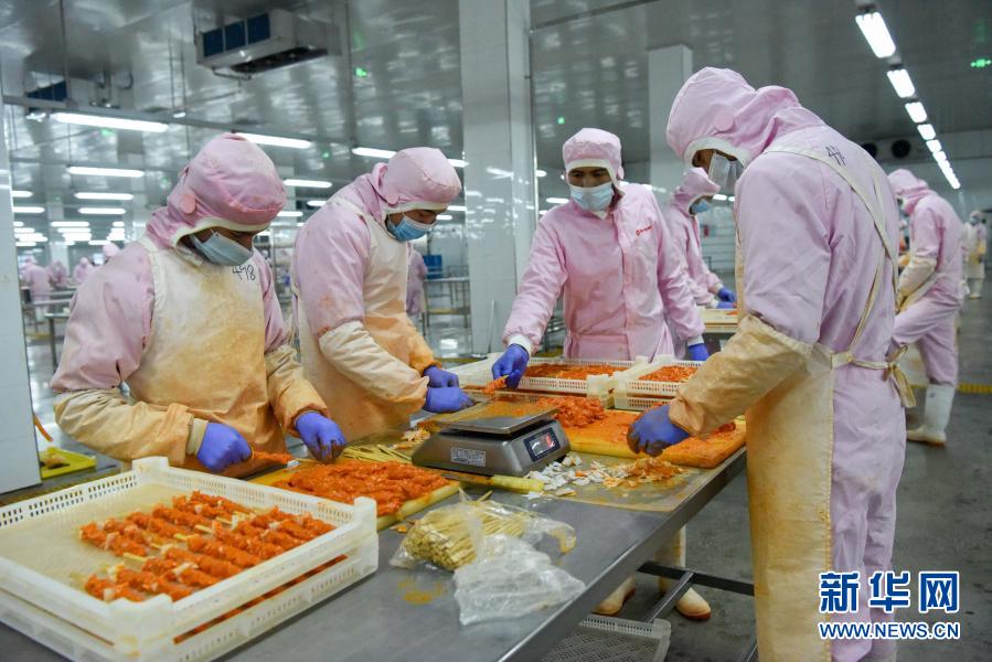 來(lái)自扎瓦鎮(zhèn)的村民麥麥提阿卜杜拉·艾山今年5月來(lái)到公司上班,現(xiàn)在是調(diào)理制品車間負(fù)責(zé)人,便民餐車不少貨品都出自他所在的車間。之前做小生意的他收入不穩(wěn)定,如今月工資穩(wěn)定還能準(zhǔn)時(shí)下班?!半x家近了,方便照顧年邁的父母?!彼f(shuō)