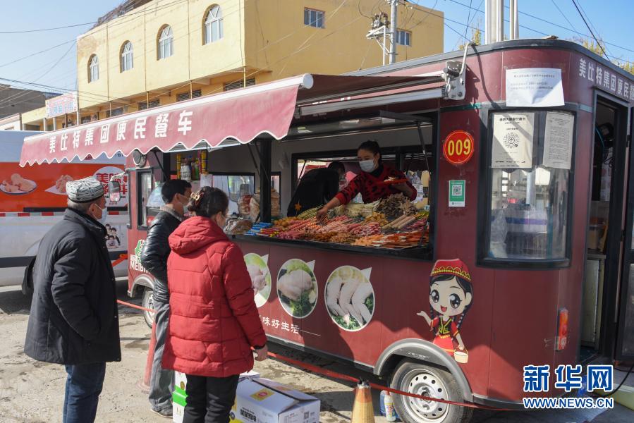 這樣的餐車如今在墨玉縣熱鬧街道都能見(jiàn)到,這是當(dāng)?shù)匾M(jìn)扶貧企業(yè)新疆美比特集團(tuán)有限公司今年新推出的扶貧利民項(xiàng)目。公司配送中心餐車配送負(fù)責(zé)人邵金介紹,目前有約500個(gè)便民餐車活躍在大街小巷,企業(yè)統(tǒng)一配送貨品,確保食品安全,還提供餐車維修服務(wù),未來(lái)計(jì)劃推廣到整個(gè)和田地區(qū)。