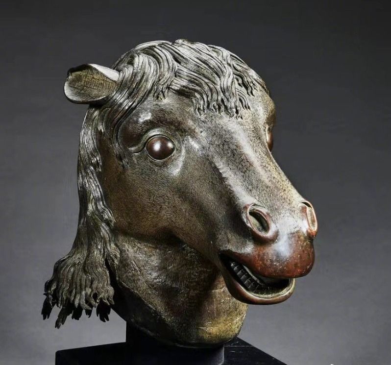 馬首銅像為意大利人郎世寧設計,清乾隆年間由宮廷匠師精工制作,融合東西方藝術風格。