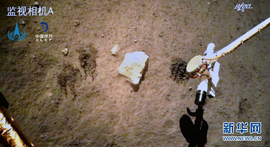 12月2日,嫦娥五號探測器在月球表面自動采樣。