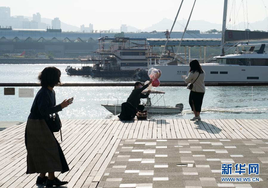 12月3日,在香港觀塘海濱花園,市民戴口罩出行。新華社記者 李鋼 攝