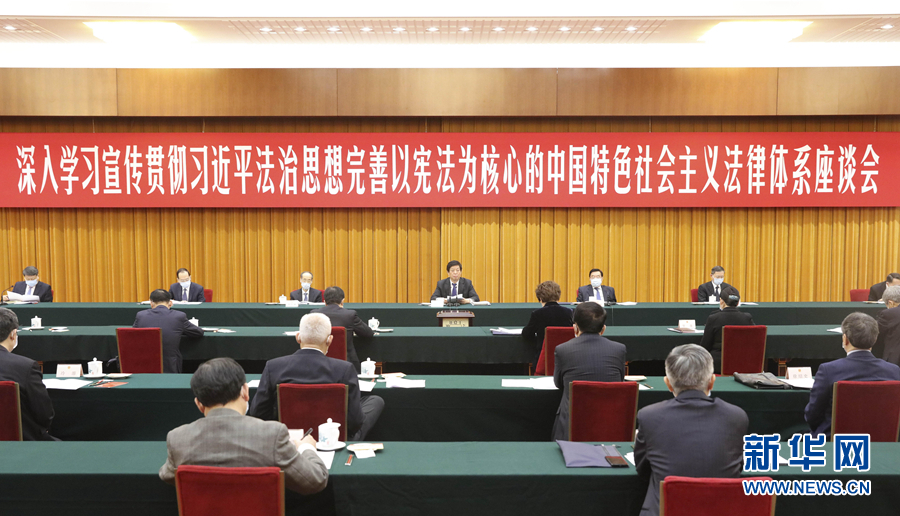 今年12月4日是第七個(gè)國(guó)家憲法日,全國(guó)人大常委會(huì)辦公廳會(huì)同中央宣傳部、司法部在京召開(kāi)“深入學(xué)習(xí)宣傳貫徹習(xí)近平法治思想,完善以憲法為核心的中國(guó)特色社會(huì)主義法律體系”座談會(huì)。中共中央政治局常委、全國(guó)人大常委會(huì)委員長(zhǎng)栗戰(zhàn)書(shū)出席座談會(huì)并講話。新華社記者 劉衛(wèi)兵 攝