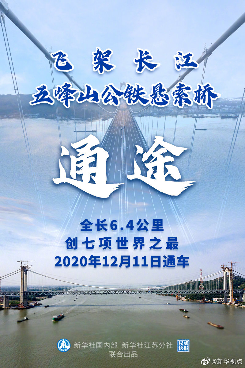 11日上午,世界上最大的公鐵兩用懸索橋——連接江蘇揚(yáng)州和鎮(zhèn)江的五峰山長江大橋通車?yán)?!大橋全長6.4公里,創(chuàng)七項(xiàng)世界之最。(記者:楊紹功、吳新生 設(shè)計:張惠慧、張晨光)?