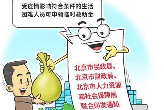 近日,北京市民政局等部門聯(lián)合出臺的《關于進一步加強困難群眾基本生活保障工作的通知》要求,對生活困難的未參保的城鄉(xiāng)失業(yè)人員、受疫情影響無法返崗復工且連續(xù)3個月無收入的京籍和持有居住證的非京籍務工人員,經(jīng)本人申請,由戶籍地和居住地所在區(qū)發(fā)放一次性臨時救助金。