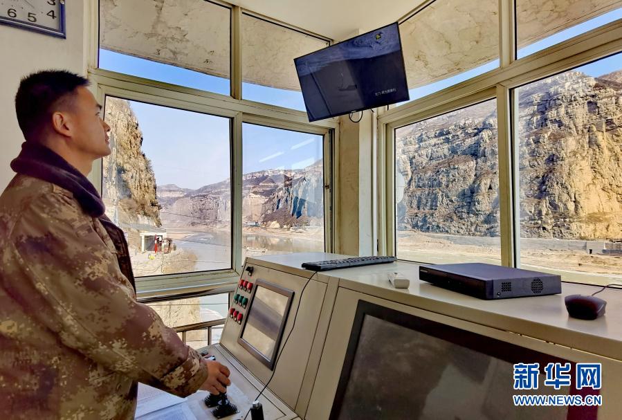 龍門水文站工作人員在纜道操作機(jī)房內(nèi)操控纜道進(jìn)行流量測驗(yàn)(12月27日攝,手機(jī)照片)。新華社記者 劉詩平 攝