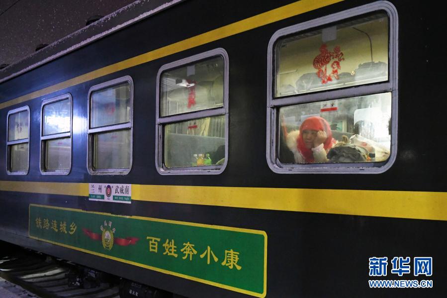 2020年1月10日,由蘭州開往武威南的7505次列車??吭谟赖钦荆幻每屯虼巴?。由甘肅蘭州開往武威南的7505次列車是一列老式綠皮車,串聯(lián)起蘭州和武威兩座城市之間的十幾座小站。因為票價便宜、乘坐方便,它成為沿線鄉(xiāng)村群眾進城購物、售賣農(nóng)產(chǎn)品、探親訪友、外出打工的首選交通工具。
