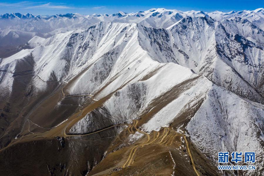 這是2020年5月1日拍攝的通往新疆喀什地區(qū)葉城縣西合休鄉(xiāng)亞爾阿格孜村的道路蜿蜒在崇山峻嶺間(無(wú)人機(jī)照片)。
