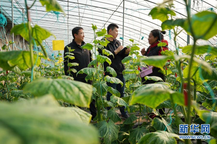 2020年12月10日,河北省巨鹿縣紀(jì)委監(jiān)委工作人員(左一和左二)在巨鹿縣一個農(nóng)業(yè)園區(qū)的大棚向種植戶了解扶貧資金落實(shí)情況。 新華社記者 牟宇 攝