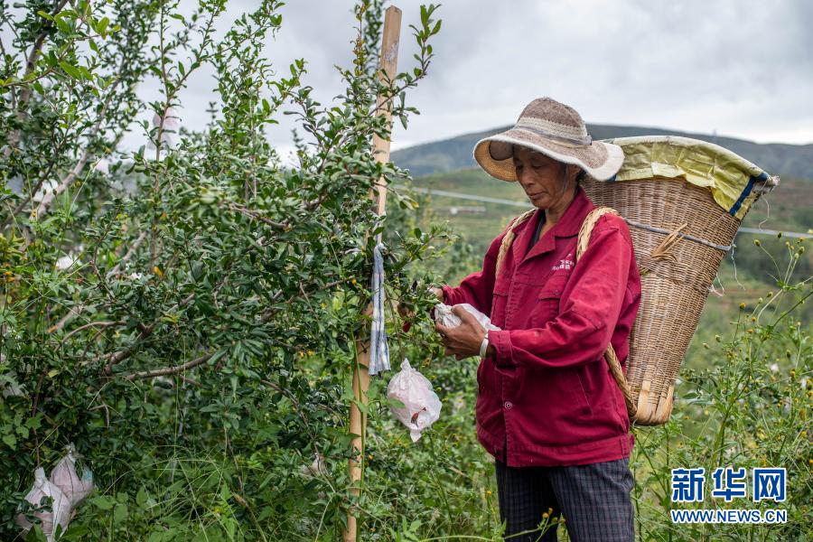 在云南省會澤縣娜姑鎮(zhèn)干海子村,干海子種植專業(yè)合作社的負(fù)責(zé)人莊錘兵正在地里管護(hù)石榴樹。