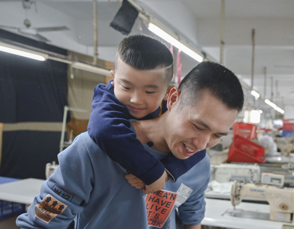 今年春節(jié),黃海龍決定在福建就地過(guò)年,這讓5歲的小兒子聰聰高興不已。這是聰聰?shù)谝淮卧诔錾睾桶职謰寢屢黄疬^(guò)年。盡管如此,黃海龍還是割舍不下遠(yuǎn)在四川老家的親人,特地為他們做了羽絨服、袖套、枕頭、圍裙等寄回去。