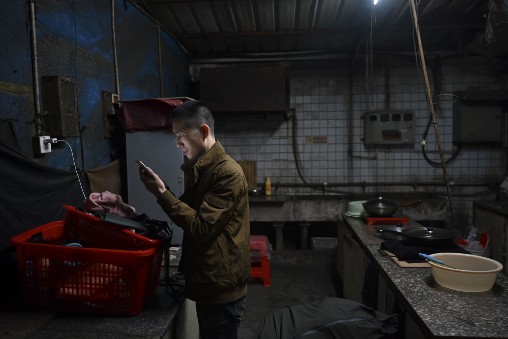1月26日,黃海龍?jiān)趶N房用手機(jī)查看剛剛收到的工資明細(xì)。這一年他們夫妻每天工作超過(guò)12小時(shí),收入合計(jì)約16萬(wàn)。