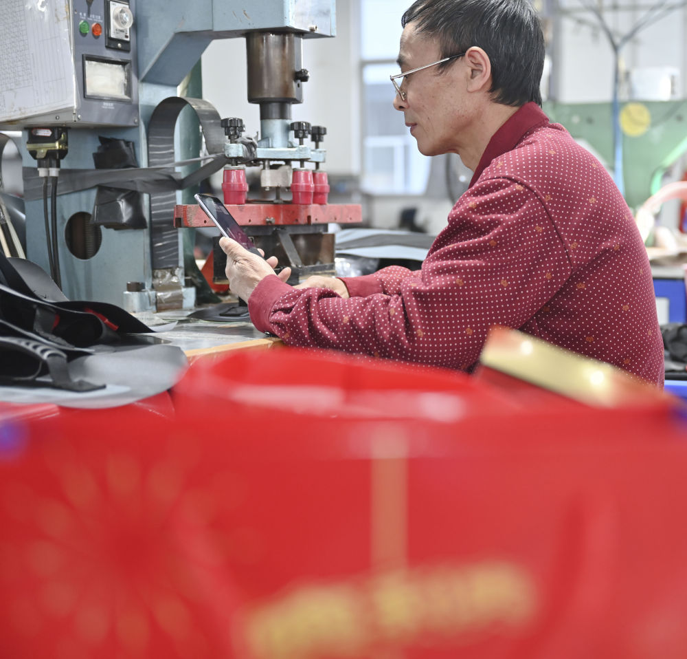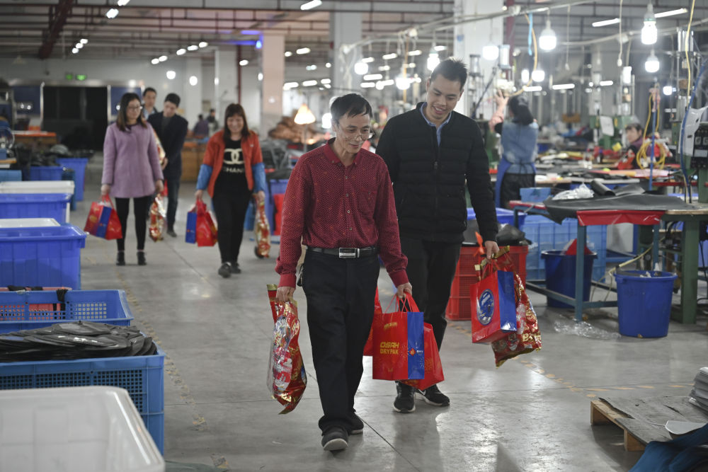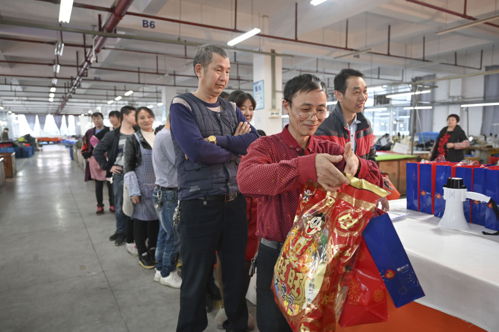 在工廠工作了十多年的張良國(guó)將領(lǐng)到的年貨拍成照片,發(fā)給遠(yuǎn)在四川老家的兒子,告訴家人這里一切都好。