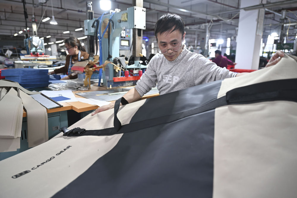 1月25日,張良國(guó)和妻子黃遠(yuǎn)玲一起加工防水包。