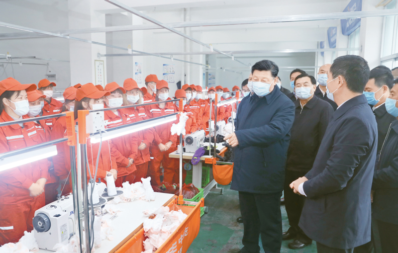 2020年4月20日至23日,中共中央總書記、國(guó)家主席、中央軍委主席習(xí)近平在陜西考察。這是4月21日,習(xí)近平在安康市平利縣老縣鎮(zhèn)錦屏社區(qū)考察社區(qū)毛絨玩具廠,了解搬遷群眾就業(yè)情況。 新華社記者 鞠鵬/攝