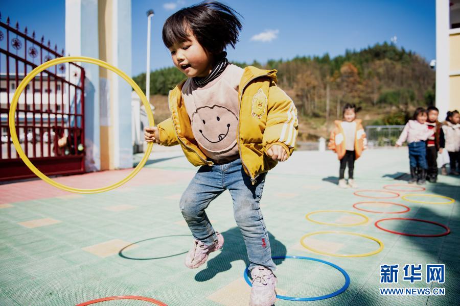 云南省鎮(zhèn)雄縣以古鎮(zhèn)巖洞腳村幼兒園的孩子在操場上玩耍(2020年11月11日攝)。新華社記者 王冠森 攝