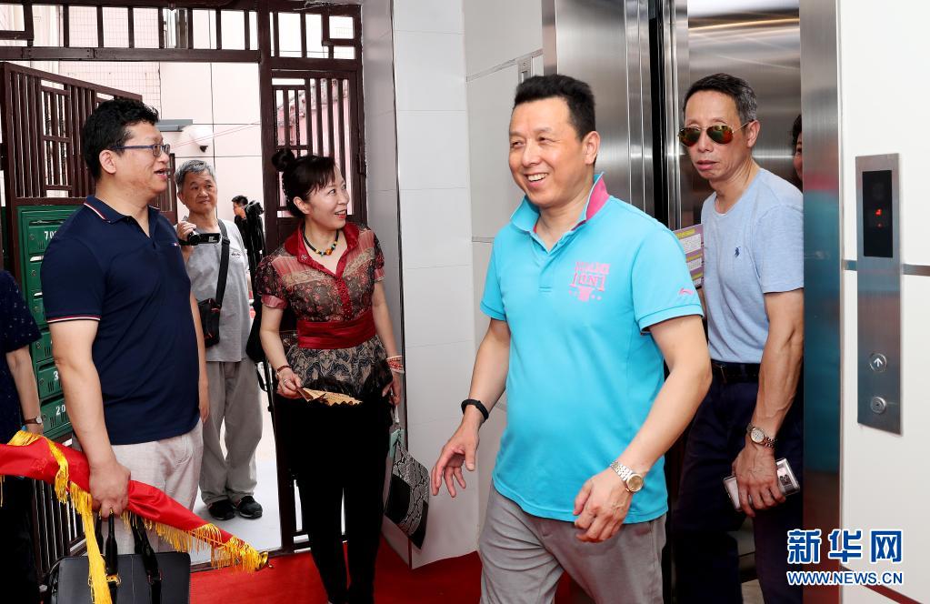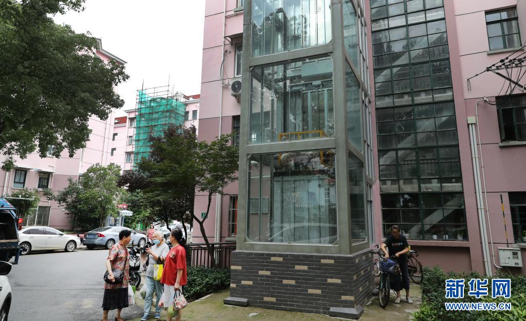 2018年6月28日,社區(qū)居民們走出新安裝的電梯。當(dāng)日,上海黃浦區(qū)五里橋街道恭房小區(qū)5、6號樓加裝電梯工程順利竣工,居民多年來上下樓困難的問題得以解決。新華社記者 方喆 攝