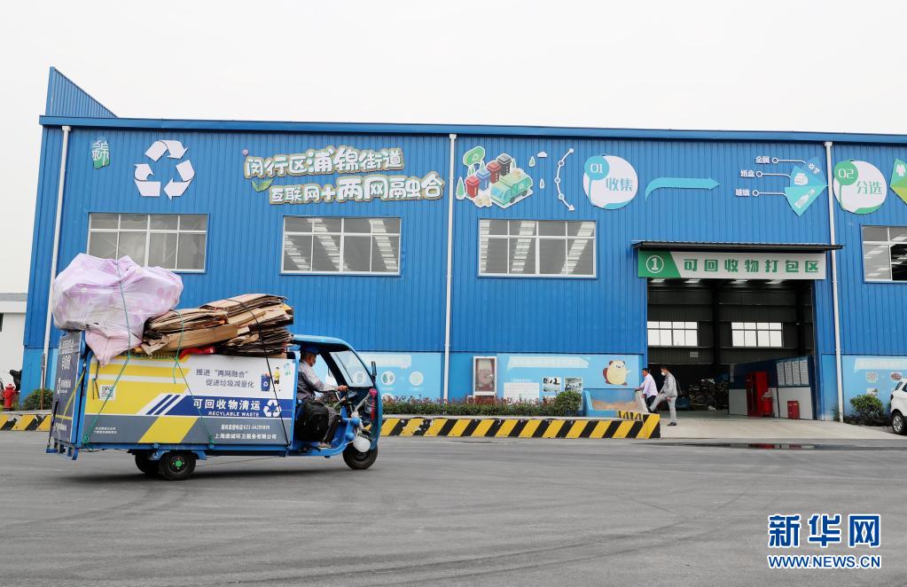 一輛可回收物清運(yùn)車駛?cè)肷虾ih行區(qū)浦錦街道的“兩網(wǎng)融合”中轉(zhuǎn)服務(wù)站(2020年5月27日攝)。新華社記者 方喆 攝