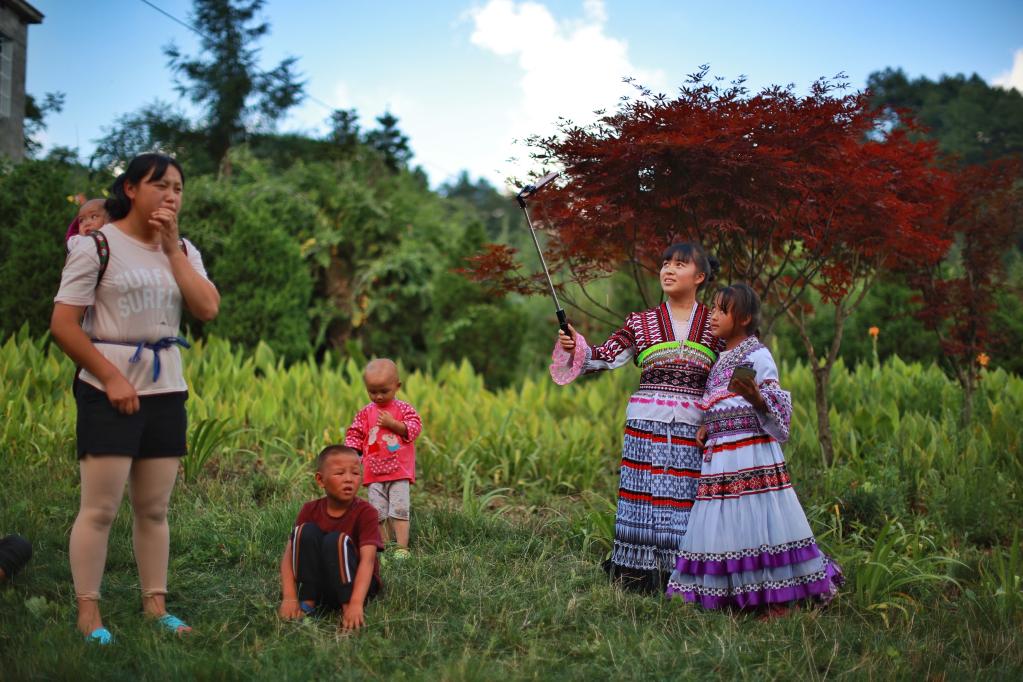 海雀村的孩子正在拍攝社交媒體視頻(2020年8月4日攝)。新華社記者劉續(xù)攝