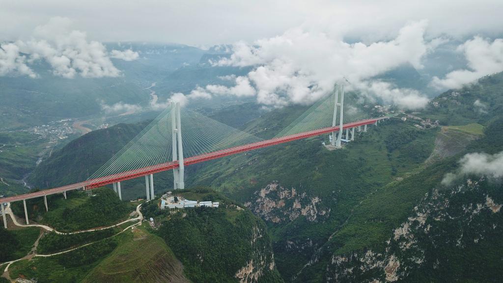 無人機航拍的北盤江大橋(2018年8月9日攝)。新華社記者歐東衢攝