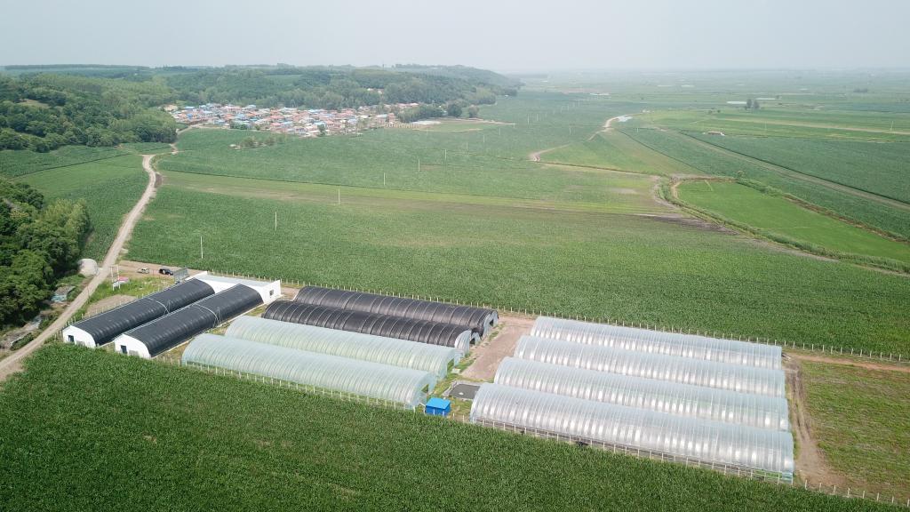 黑龍江省望奎縣海豐鎮(zhèn)恭頭一村的中藥材科研和種苗繁育基地(無人機(jī)照片,2020年7月4日攝)。新華社記者王建威攝